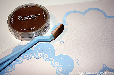 Diesen fungerer nå som en sjablong, og den får litt sverte på seg fra PanPastel, men når man først har slike herlige verktøy i hus, må man også tørre å bruke de og boltre seg litt ekstra :-)